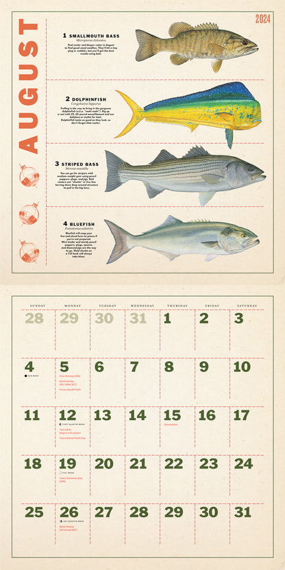 Twelve Months of Fishing Wall Calendar 2024, Monthly January